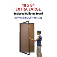 Designed to withstand typical everyday use and weather conditions, 48 x 84 outdoor enclosed bulletin boards are constructed with a single door that has a solid continuous hinge and secured with front facing cam locks. The break-resistant Lexan polycarbonate window provides clear viewing.