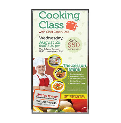 The economical top and side-load beveled frames offer a cost-effective solution for displaying large ads, graphics, or signage, allowing companies to effectively showcase their promotional materials. The quick-changing feature makes it easy to update posters or wall sign frames as needed, saving time and effort for businesses.