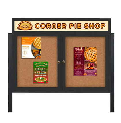 Need a stylish, safe, and effective way to display messages in an outdoor location? Our 84x30 Outdoor Enclosed Bulletin Board with 2 Lockable Doors and 2 Leg Posts features a sleek radius edge profile design, weatherproof bulletin board display case, and a personalized message header.