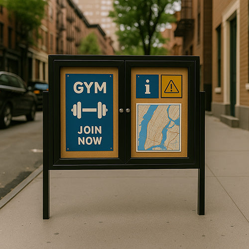 Free Standing "SwingCases" Lighted 2-Door Enclosed Bulletin Boards are built for all kinds of outdoor locations. With an overall display case depth of only 3 1/8 inches, the lockable display boards are ideal for outdoor public areas.