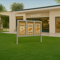Free Standing "SwingCases" Lighted 3-Door Enclosed Bulletin Boards are built for all kinds of outdoor locations. With an overall display case depth of only 3 1/8 inches, the lockable display boards are ideal for outdoor public areas.