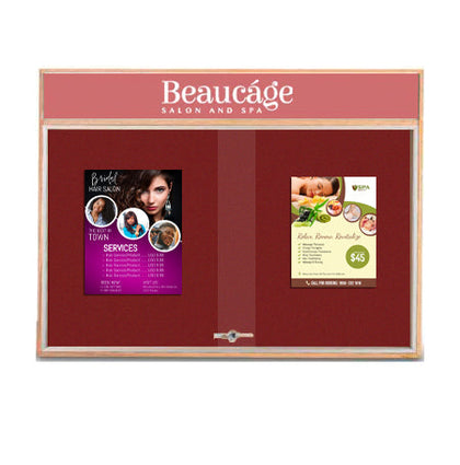 Promote the name of your school, university, classroom, sports team, office, business, event or whatever you like with the 50x40 sliding glass bulletin board's personalized header panel. We'll print your message free in All Caps Helvetica Black Lettering, a great way to catch people's eye. Add Custom Fonts, Logos in B/W or Color for an upcharge or leave the panel blank.
