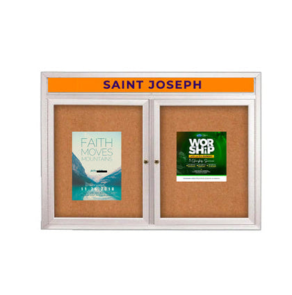 Metal framed 72 x 48 "SwingCase" Indoor enclosed bulletin board has three lockable doors. Each door has continuous solid steel hinges and a clear break resistant Lexan Polycarbonate window. These wall display boards are secured with front cam locks (2 Keys are included). Tempered Glass is optional.