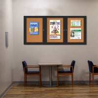 These lockable wall mounted 3 Door Metal Framed Bulletin Board Display Cases also come with lights, personalized message header, single and multiple doors: 1 Door, 2 Door and 4 Door enclosed bulletin boards.
