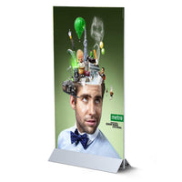 The durable Modern Mount Steel Base display offers stability and style, making it an ideal choice for countertops in retail stores, cafes, reception areas, and trade show booths. Its compact size ensures it doesn't take up much space while providing ample visibility for your messages. You can display your boards printed on one or both sides for double-sided viewing. Alternatively, display two poster boards on rigid boards, which total to 3/16" thick.