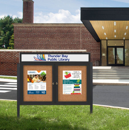 Our 84x30 outdoor free standing enclosed bulletin board is designed to withstand the elements with its weep holes, silicone sealant, and 2 lockable bulletin board doors with break-resistant acrylic windows. These features ensure your messages are displayed and protected regardless of the weather.
