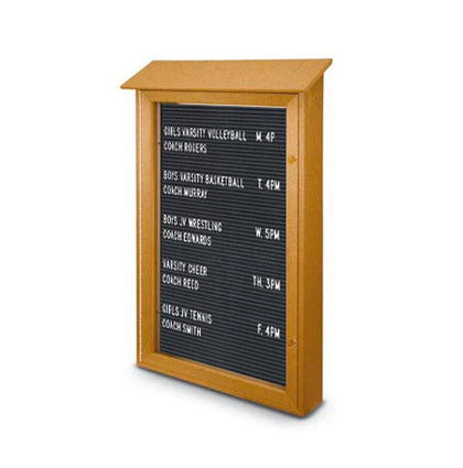 This wall-mount, single-door outdoor letterboard display features a Faux Wood design that captures the appealing look of natural wood. With a choice of six faux wood finishes, you can find the perfect match for your building's exterior.