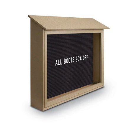 The letterboard display design with Faux Wood comes in various wood-style finishes. So you can choose the wood style that best fits your exterior location setting. There are six popular finishes Sand, Light Gray, Weathered Wood, Woodland Geen, Cedar, and White.