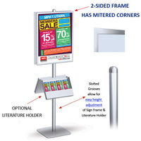 POSTO-STAND™ Sign Stand with Double-Sided 22x28 Snap Frames - Slotted Single Post for Sign and Literature Holder Adjustments