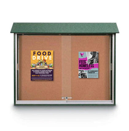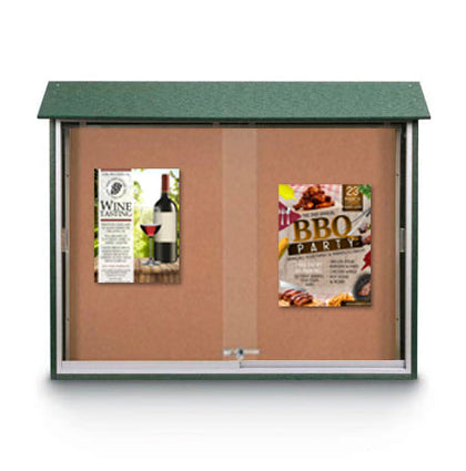 This Eco-Design 48x48 Free Standing Bulletin Board Message Display with Two Posts features a cabinet with a 3 3/4 Inch deep interior display area and sliding doors. It's also made with Faux Wood to stand up to the everyday outdoor elements.