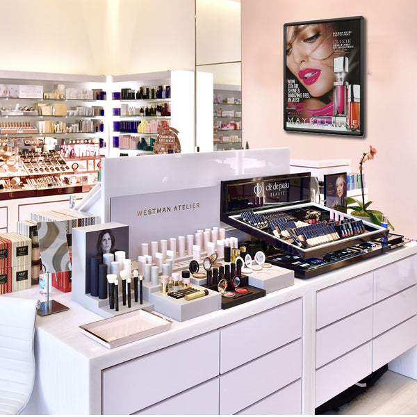 - 22x34 Quick-Changing, all 4 frame rails snap-open for easy poster changes