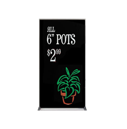 - Silver aluminum trim (1/2" WIDE) borders the black marker board