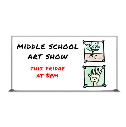- Silver aluminum trim (1/2" WIDE) borders the white board