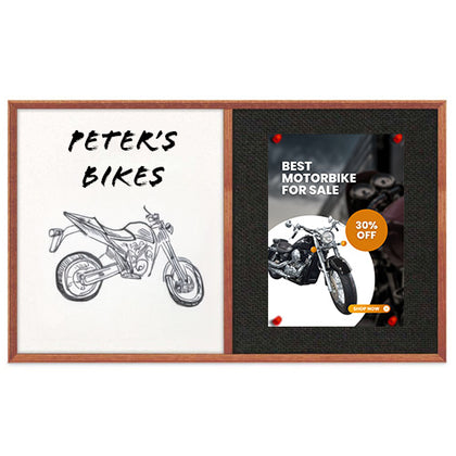 Wood Trimmed Wood Framed combo board display comes with factory installed hanging hardware. This size combo board is offered in landscape (horizontal) orientation 24" Wide x 12" High.