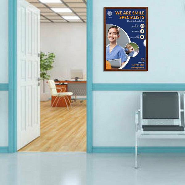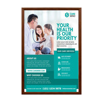 Wood Poster Snap Frames are perfect for many quick-change display needs that want a wood look inside. Whether it's a small wood snap frame project or a large national signage rollout, no other changeable poster or sign frame meets display needs and budget constraints as cost-effectively as easy front-loading, wall-mount wood faux snap frames. Don't see the Wood Poster Snap Frame Size you need? Contact us. We'll build it.