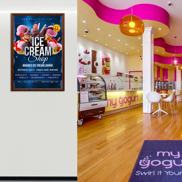 This high-quality, mitered, front-loading "SwingSnap" poster display wood frame is widely used for trade shows, exhibits, retail stores, corporate offices, hotels, restaurants, casinos, elevators, banks, and movie theaters, sports and entertainment centers, government agencies, and for point-of-purchase display and store signage fixtures.