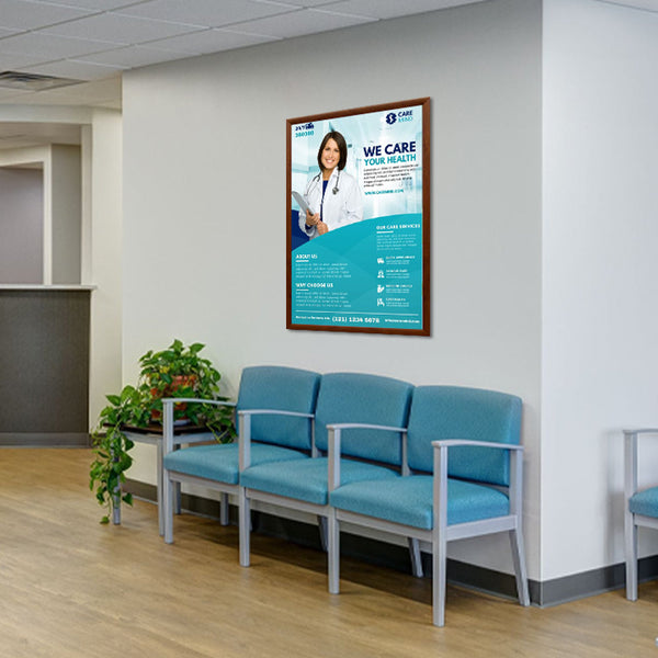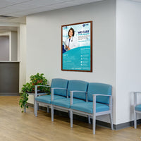 Wood Poster Snap Frames are the ideal choice for many quick change display applications that require an interior touch with a wood finish. Whether it's a small wood snap frame project or large national signage rollout, no other changeable poster frame or sign frame meets the display needs and tight budgets as cost effectively as easy front loading, wall mount wood faux snap frames. Don't see the Wood Poster Snap Frame Size you need? Call. We'll built it.